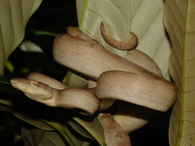 Eine Würgeschlange (Candoia bibroni), die sichtlich durch uns genervt ist und
